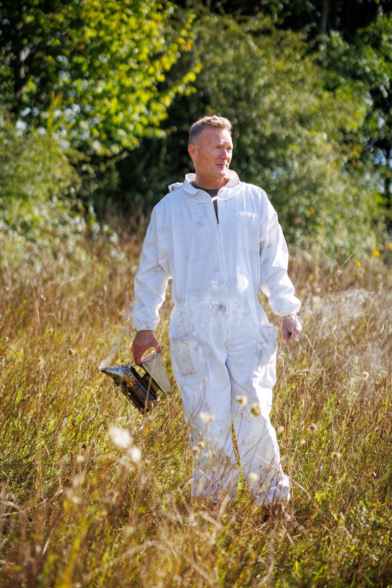 Martin had long been an enthusiastic amateur beekeeper, and has tended to hives for more than 15 years now, but during the pandemic, like many people, he decided to reorganise his priorities. “I ran a design business for 27 years, and beekeeping in my spare time had always been brilliant for me from a wellbeing perspective: it gave me space, peace, clarity and tranquillity. When Covid happened, I reflected on my life and I made it my focus, rather than something to ‘fit in’.”